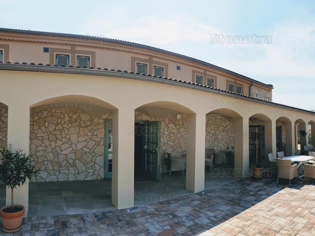 This limestone is used as cladding stone for building facades, fences, fireplaces, decorative stone in living rooms, hallways, and kitchens. Since limestone is a softer and slightly absorbent material, we recommend impregnating it. Irregularly shaped paving/cladding stands out for its color and structure.
