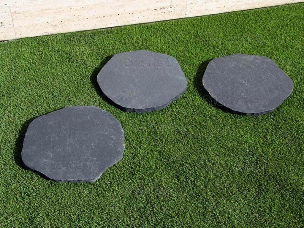 Nero limestone stepping stones, with a diameter of approximately 35 cm and a thickness of 2.5–3.5 cm, are an excellent choice for creating elegant and durable garden paths. This natural limestone is characterized by a deep black color with subtle natural variations that give the space a modern and luxurious look. Limestone is popular for its high strength and durability, while retaining a pleasant surface to the touch. Thanks to its non-slip structure, it provides a safe footing even in wet weather. Ideal for minimalist garden designs.