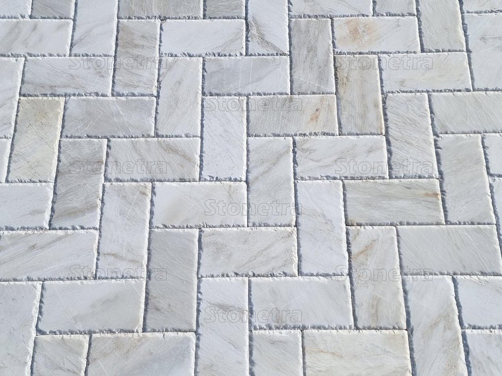 The edge of the paver is chipped and has a rustic look. Alexandria marble can be widely used as pavers for terraces, around swimming pools, or for driveways and walkways around the house. Thanks to its non-slip surface, it is an excellent alternative to interlocking paving.
