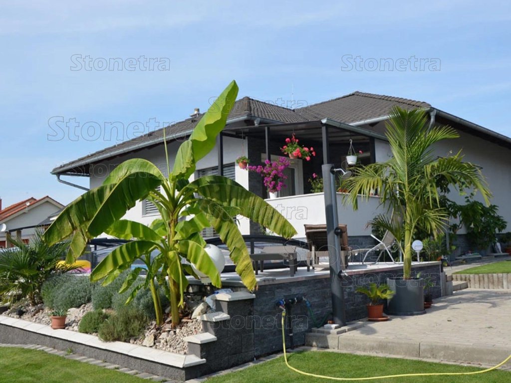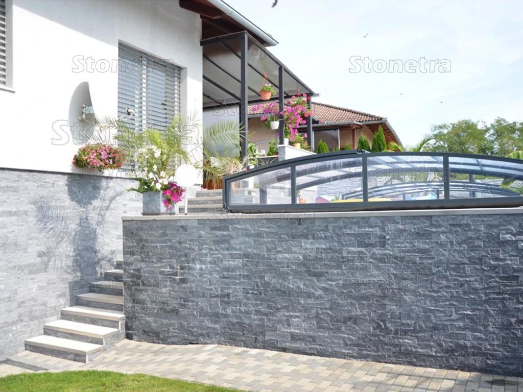The black marble stone cladding is cut four times and supplied in the form of cladding bricks sizes of 30 x 7.5 cm and 1–2 cm thick, which makes it easy to install and handle. The cladding process is also simplified by the fact that this type of marble cladding does not require grouting.