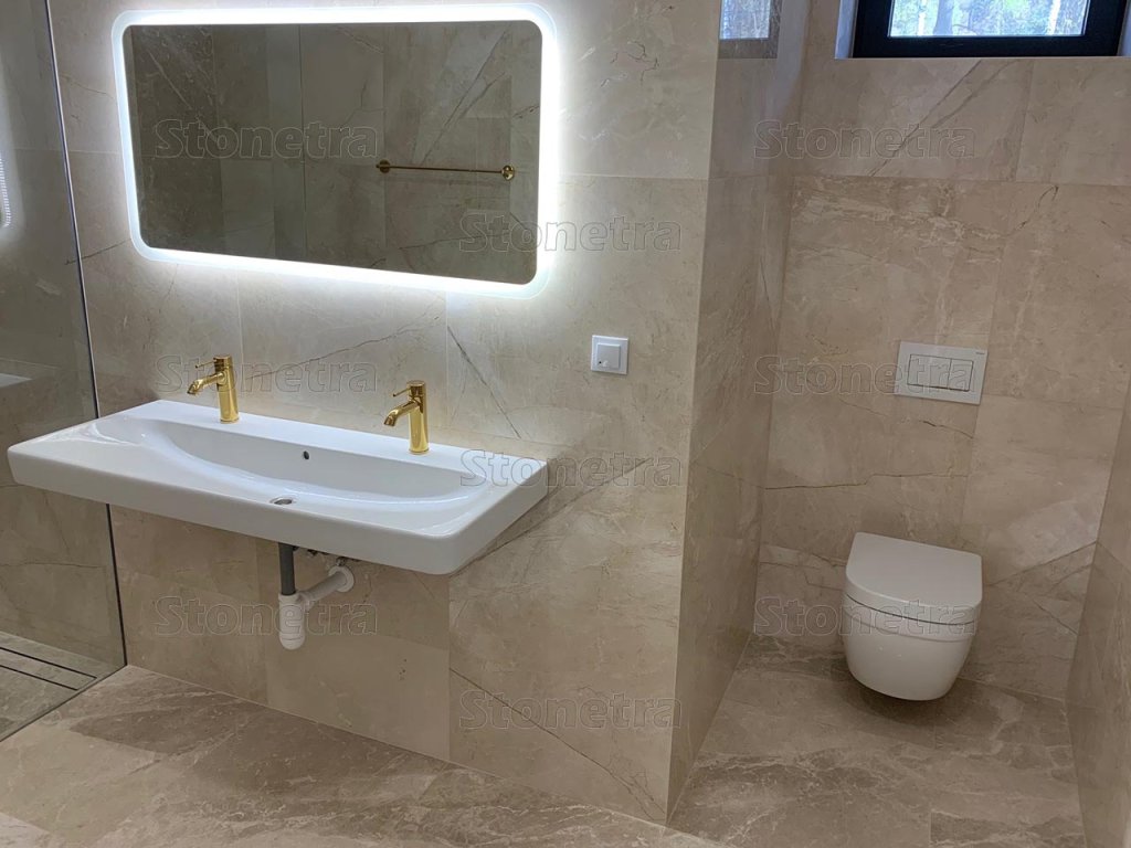 Impregnation can be used to highlight the pattern on the stone or achieve greater shine. A suitably chosen color will brighten up any room. In addition to their elegant simplicity, large-format tiles are a very modern trend and are well suited to the current light style of living.
