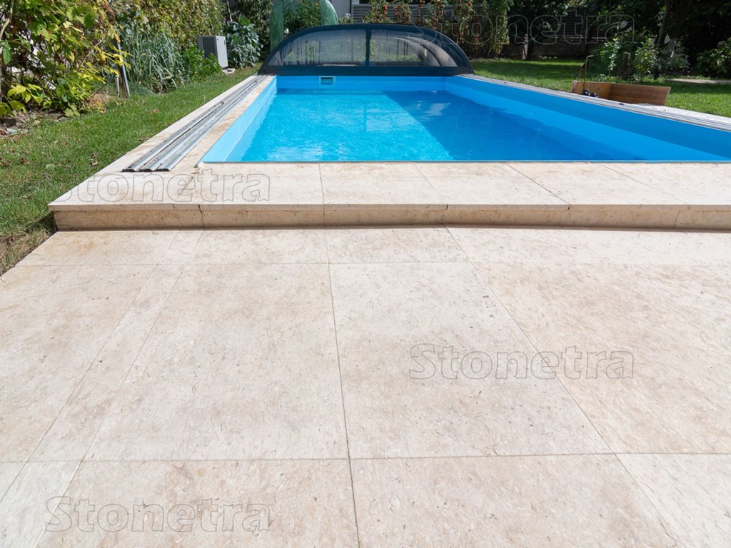 This marble is primarily intended for outdoor use, as it is high-quality, frost-resistant, and, most importantly, non-slip when walking with wet feet. Its pleasant light beige color prevents the tiles from overheating in the sun, which is ideal for walking barefoot. Thanks to its properties, Shells Marble is most often used as paving for swimming pools or terraces, giving them a unique, original look and a feeling of luxury.