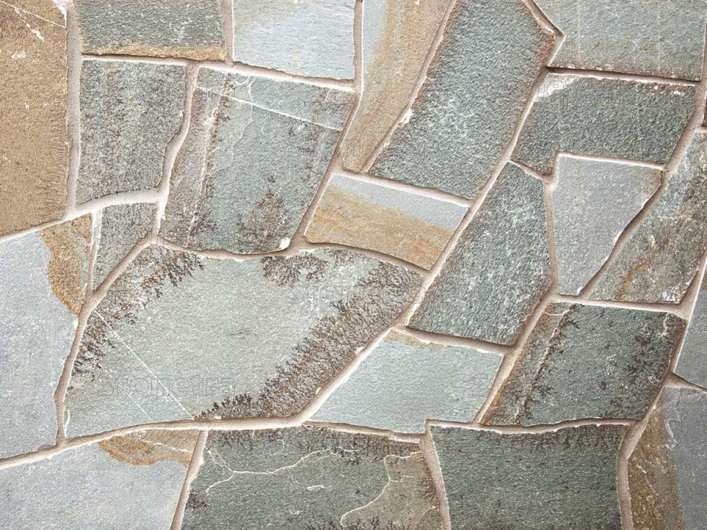 Quartzite split stone is most often used as cladding stone or for laying natural stone paving, depending on its thickness and evenness. This type of stone is also suitable for use as exterior wall cladding, plinths, and facade cladding. Olive quartzite, which is gray-green in color with a beautiful pattern, is split to a thickness of 1-3 cm and has a cladding diameter of 10-50 cm.