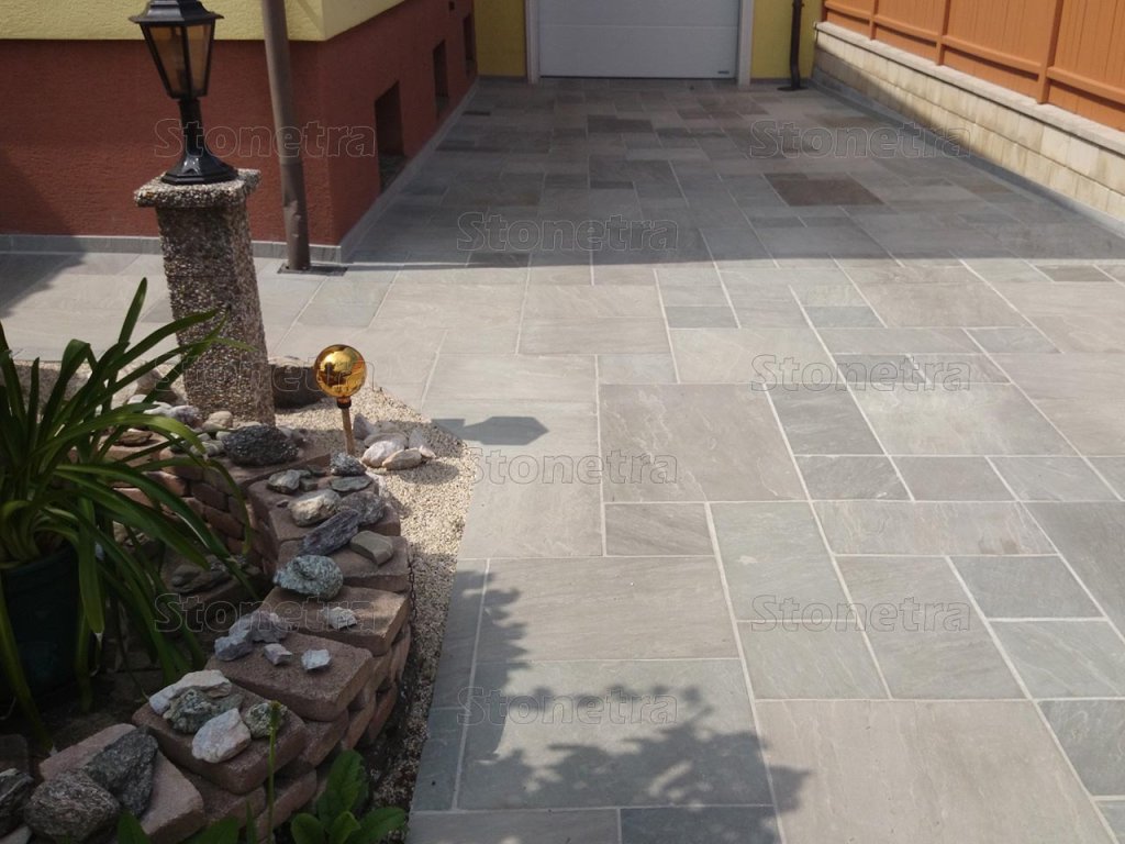 This type of quartz sandstone is a very durable material, frost-resistant and non-slip. It can be laid either by bonding it to the concrete substrate or simply by placing it in a dry bed.