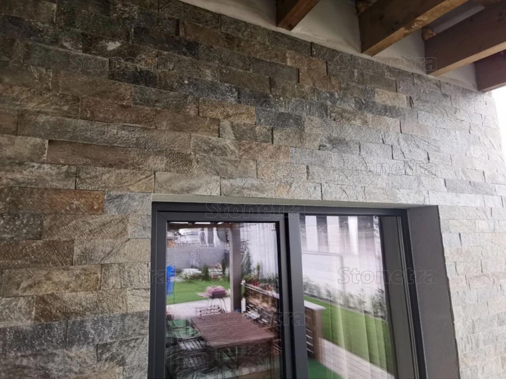 Stone strips are becoming a fashionable trend as a decorative element in family homes, apartments, and commercial spaces. Attractive stone cladding with a slight metallic sheen. The surface is almost flat, slightly wrinkled, with colors ranging from anthracite green to golden. Cladding stone at an excellent price.