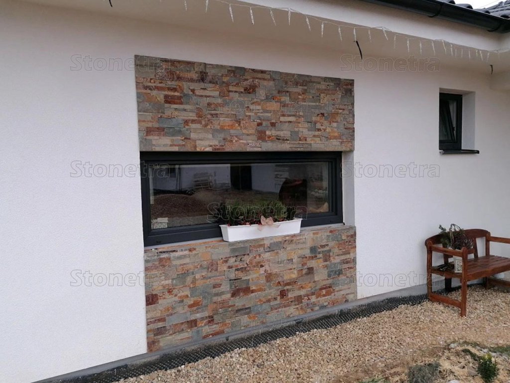 The Z-panel cladding made of natural multicolor slate in the format of 35 x 18 cm, thickness 1.5 cm, is suitable for both interior and exterior use as cladding for plinths, walls, fireplaces, fences, or as facade cladding.
