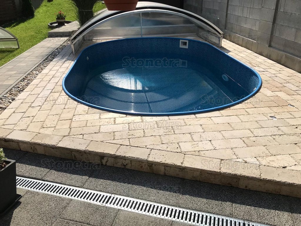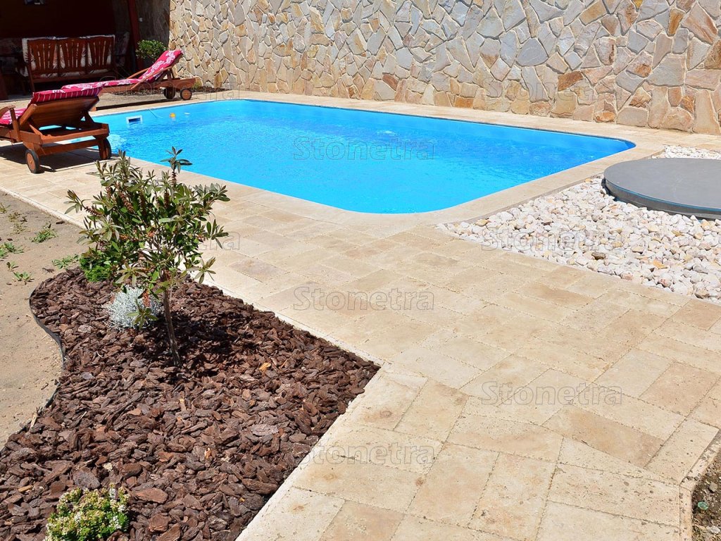 At Kameň Skalica, we offer Travertine Classic tiles in various formats, including a practical 30.5 x 15.2 cm format with a thickness of 3 cm. However, Travertine Classic is also available in other formats, such as 60 cm x 40 cm x 3 cm. Travertine Classic tiles can be easily combined with cut travertine wall tiles, pool edging, cut steps, window sills, curbs, and mosaics in the same design.