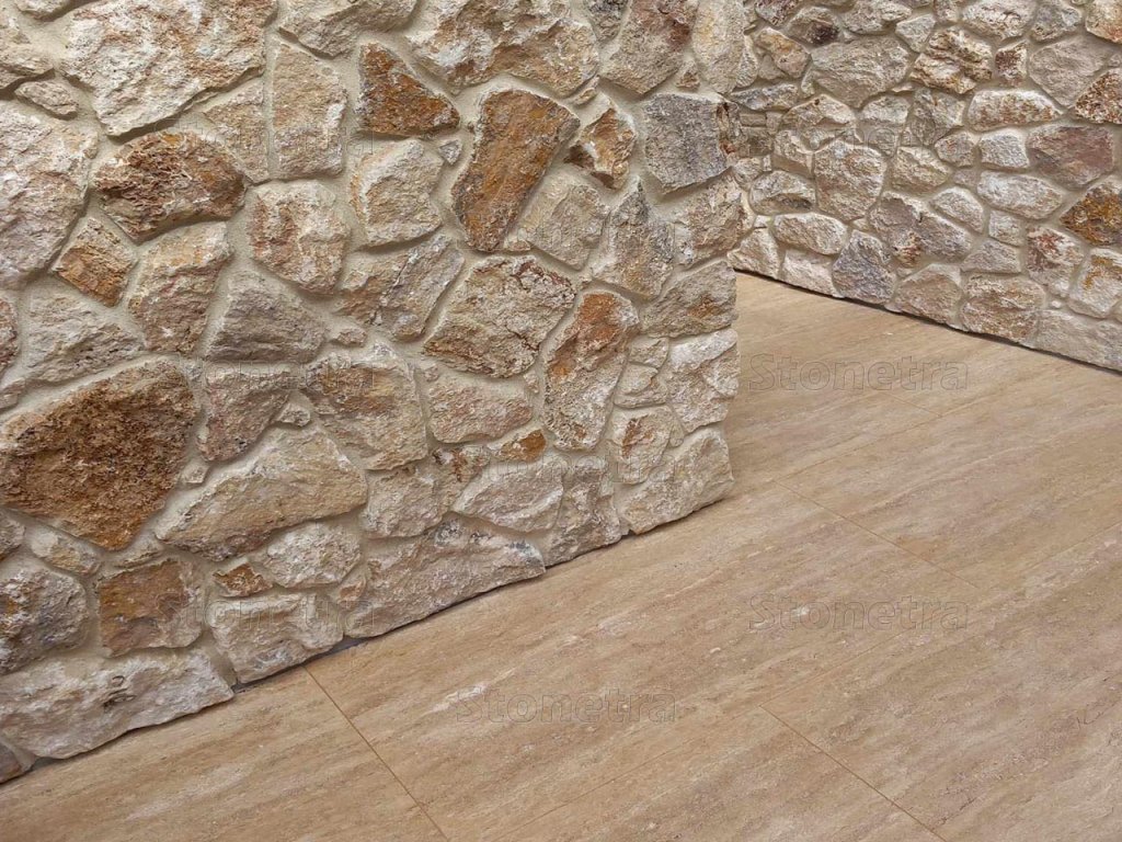 Travertine Classic Beige VC is an original large-format natural stone of size 120 x 60 cm with a thickness of 2 cm. The tiles feature light and darker beige tones with a VC (vein cut) pattern. Despite the color differences between the travertine stones, they blend very well when laid together. The surface is matte, with unfilled pores, which highlights its natural character and fits into any environment.