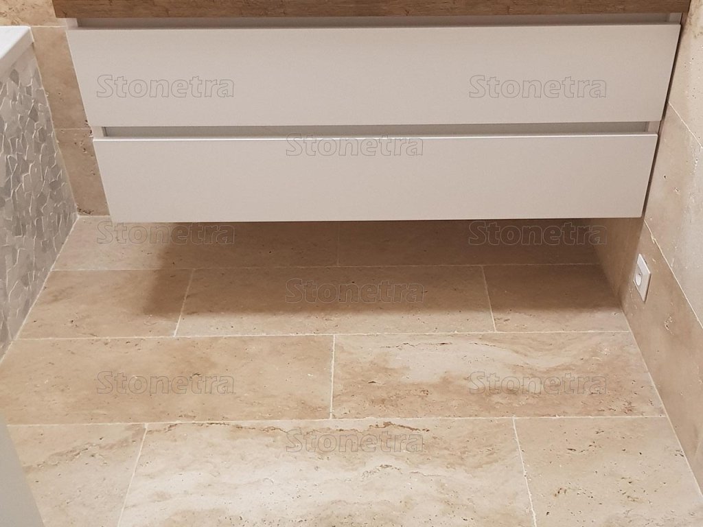 Large-format travertine tiles are particularly popular for their ability to visually enlarge a space and create a uniform and harmonious look. The sizes of 61 x 30.5 cm provide sufficient surface area to highlight the unique patterns and textures of travertine. Large-format tiles are therefore the perfect choice for modern and minimalist spaces, where their natural design stands out.
