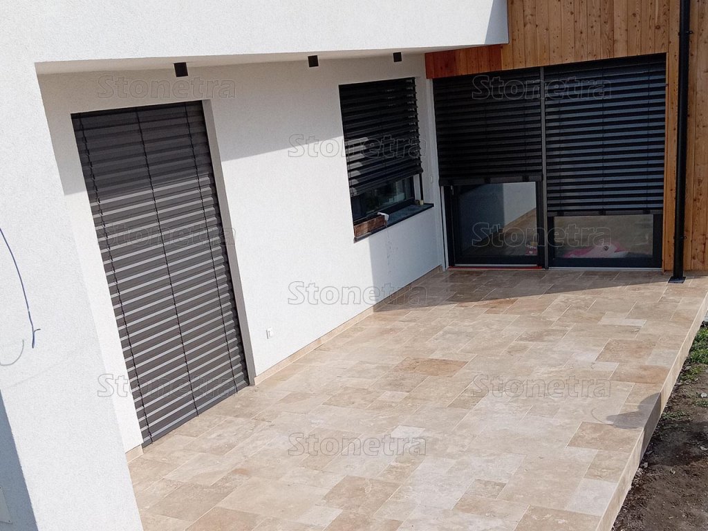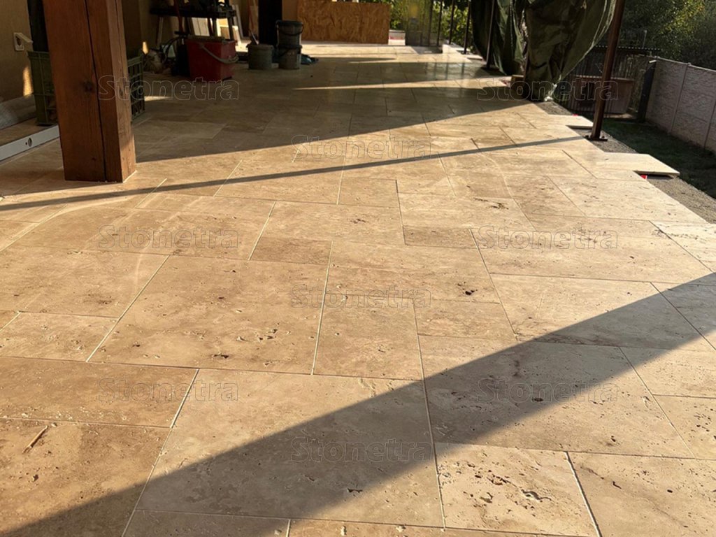 Our tip: we also offer a thicker version of Travertine Classic French pattern stone paver, 3 cm thick, in the same color.