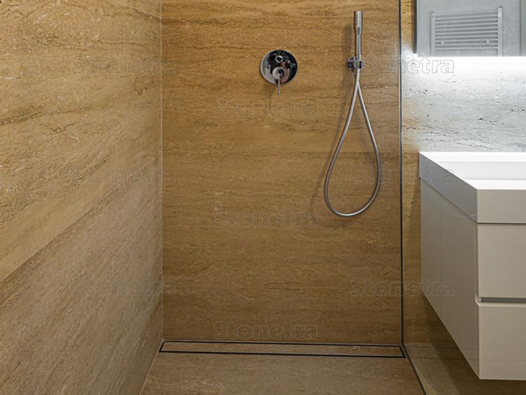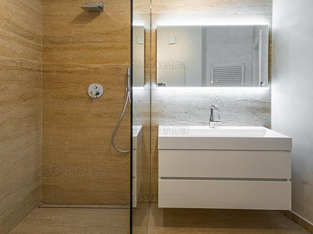 It blends in nicely and creates a warm home atmosphere anywhere, even as flooring in the hallway, but it can also shine in office spaces. Travertine is a porous natural stone, so we recommend gluing it with white adhesive to prevent the color of the stone from changing.