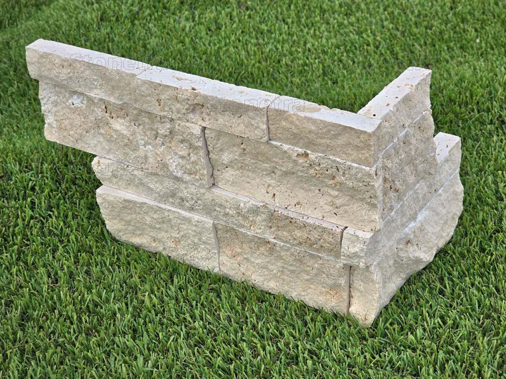 The visible side is natural/broken, the back side is flat/cut on a mesh. The cladding in a soft beige color is easy to combine with other color shades, e.g., facades. Its natural appearance gives the space a unique character. It is an integral part of both classic and modern buildings and has a wide range of uses both indoors and outdoors.