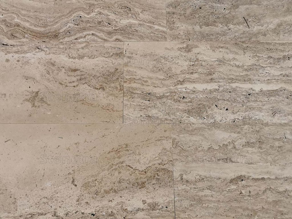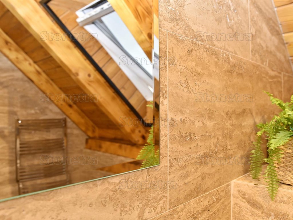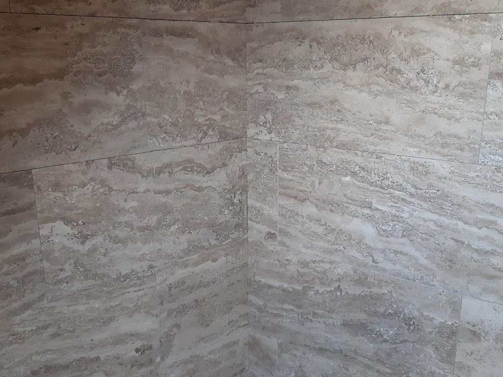Its beauty stands out in bathrooms, living rooms, hallways, kitchens, or on facades and fences. Since travertine is a porous natural stone, gray adhesive may seep through and change the color of the stone, so we recommend using white adhesive.