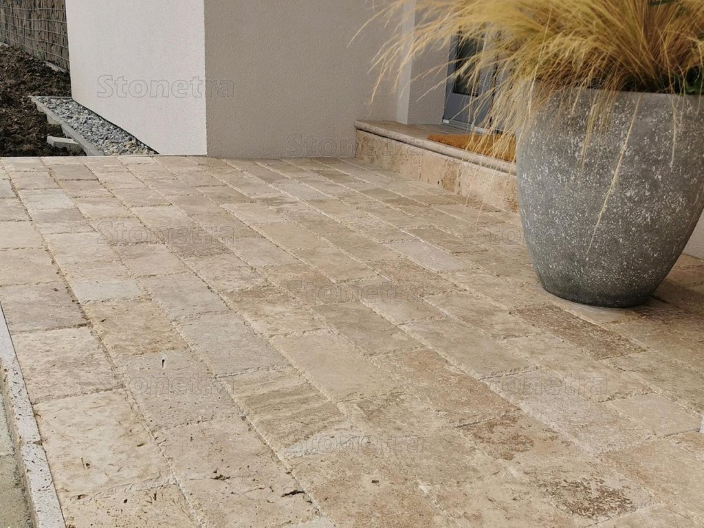 Outdoor travertine paving retains its color even after years of use, as the natural colors do not fade due to weather and sunlight. Travertine paving is also known for its high resistance to mechanical wear, frost resistance, and anti-slip properties. Therefore, it is also suitable for demanding conditions where resistance to weathering and high loads is important.