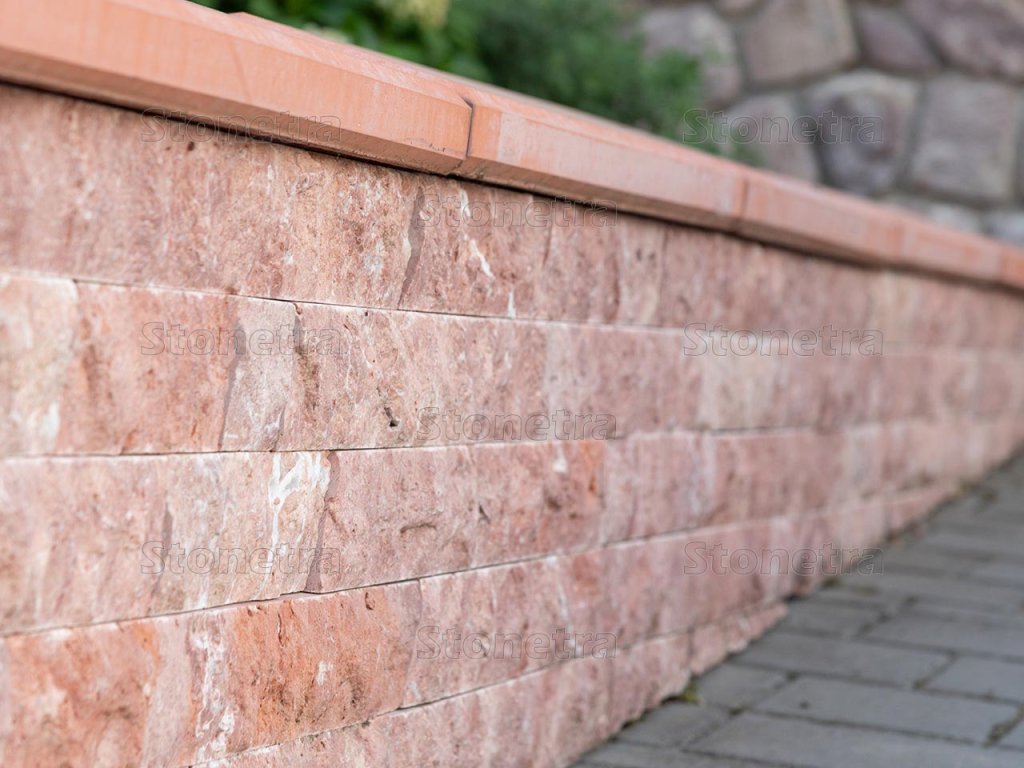The visible side is natural/broken, the back side is flat/cut. Let yourself be captivated by the beauty of stone and furnish your home using stone materials. The delicate pink-burgundy shade will highlight your tiled surfaces. Each piece is unique, differing in color, pores, and rock veins, and the overall result guarantees a beautiful aesthetic impression. Whether you want to create a rustic, rural, luxurious, or elegant style for your home, you are sure to find something you like in our range of natural stones.
