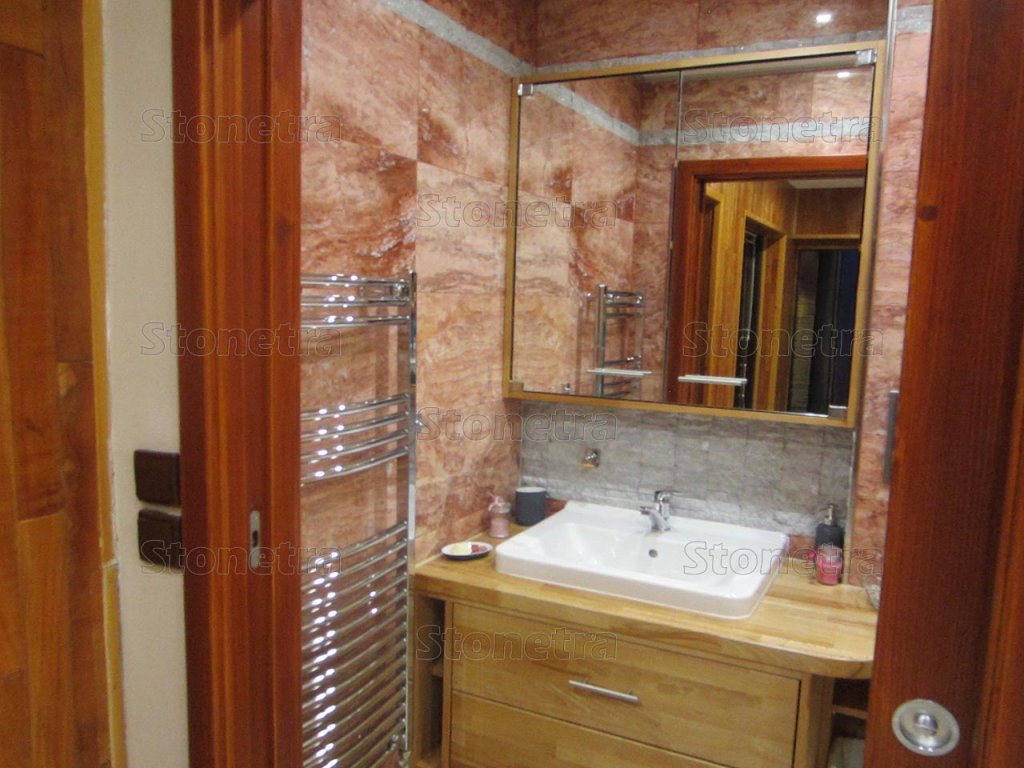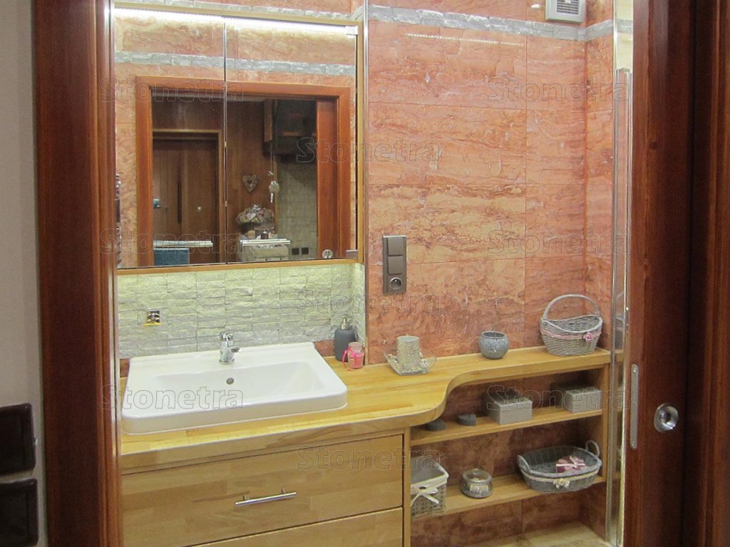 The appearance of the tiles can be enhanced by using impregnation, which highlights the veining or creates a wet effect. The stone can be used as cladding in kitchens or bathrooms or as flooring in hallways, living rooms, and entrance halls. Thanks to its heat accumulation properties, it is an ideal choice for underfloor heating. Materials with a thickness of 1.2 cm are used for interiors, and a thickness of 1.5-3 cm is chosen for exteriors. Travertine is a regal and noble material that we bring to your homes.